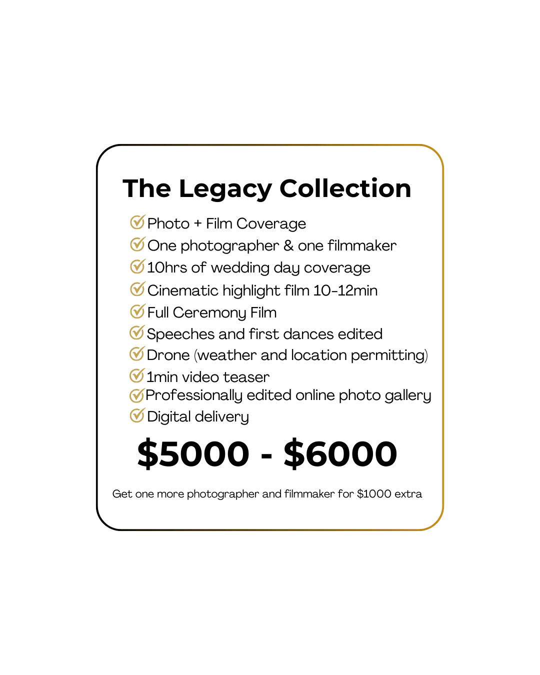 Rather than going with our one-size-fits-all packages, we will thoughtfully tailored your experience. Because no two weddings are ever the same, and your story deserves to be captured in a way that feels uniquely yours.